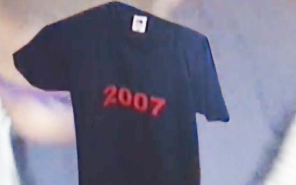 ロンドンのレーベルlife is beautiful作Pretty Vの”2007″Tシャツ。サイズは残りXLのみです。モデル画像は170cmサイズLです。